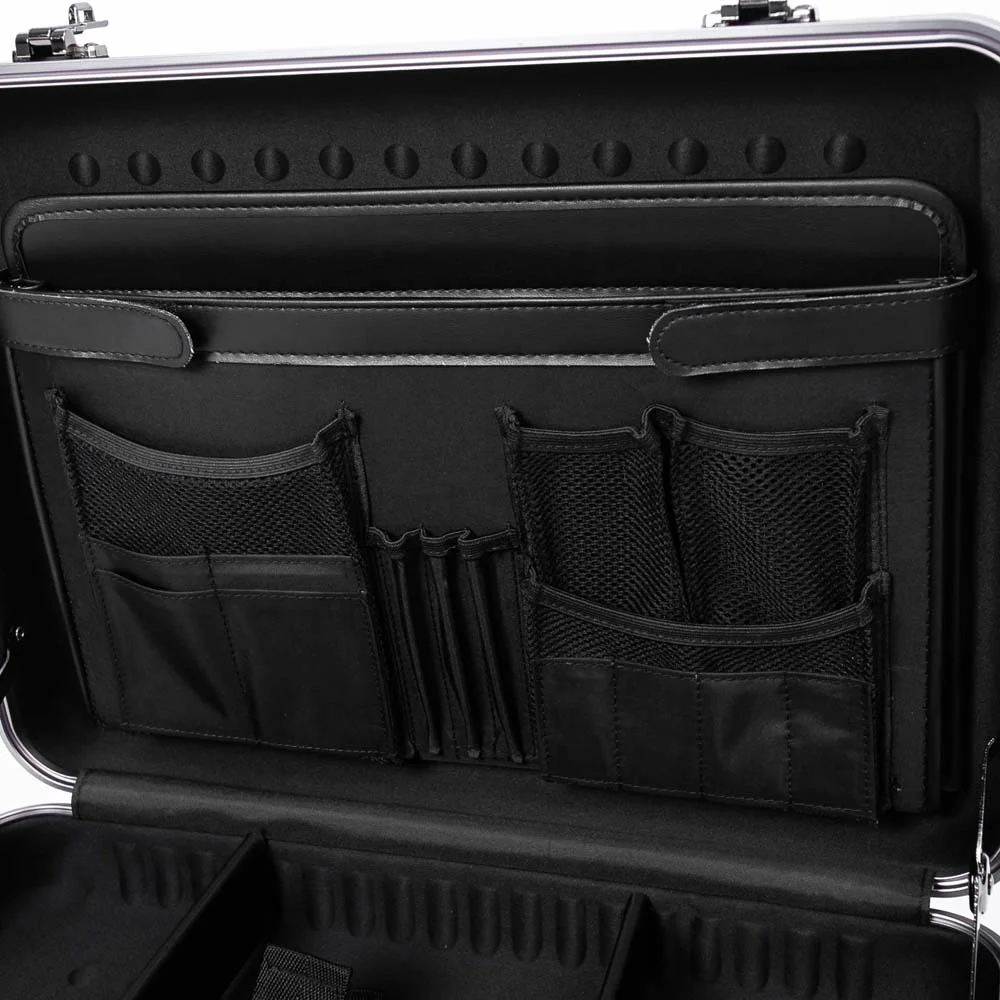 • Storage Space: The inner lid features a detachable document bag lined with velvet. The storage space uses customizable EVA dividers, allowing it to accommodate items of varying sizes.